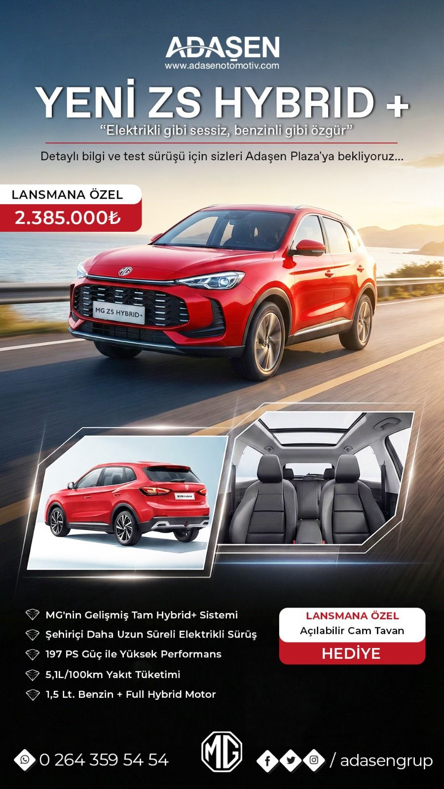 Adaşen Otomotiv, otomotiv sektöründeki çok yönlü hizmet yapısı ve güçlü satış organizasyonuyla dikkat çekerken, hibrit SUV segmentinde önemli bir adım attı. İngiltere’nin köklü markası MG Motor’un yeni nesil SUV modelleri MG ZS Hybrid+ ve MG HS Hybrid+, Adaşen Otomotiv showroomlarında satışa sunuldu.