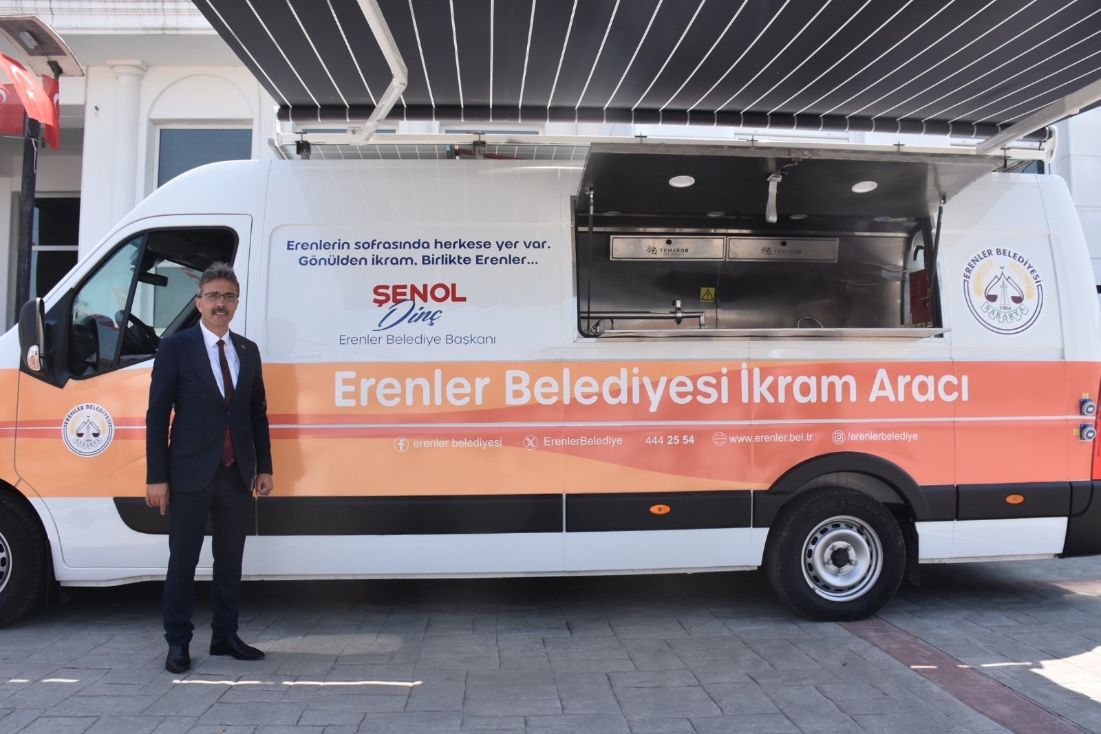 Başkan Şenol Dinç, “Erenler Belediyesi olarak sosyal çalışmalarımıza çok önem veriyoruz. Bu doğrultuda 2 yeni ikram aracını hizmete sunduk. Bu araçlarımız etkinliklerimizde, cenaze hizmetlerinde, afet bölgelerinde hizmet veriyor. Araçlarımızla vatandaşlarımıza hizmet edeceğiz” dedi.