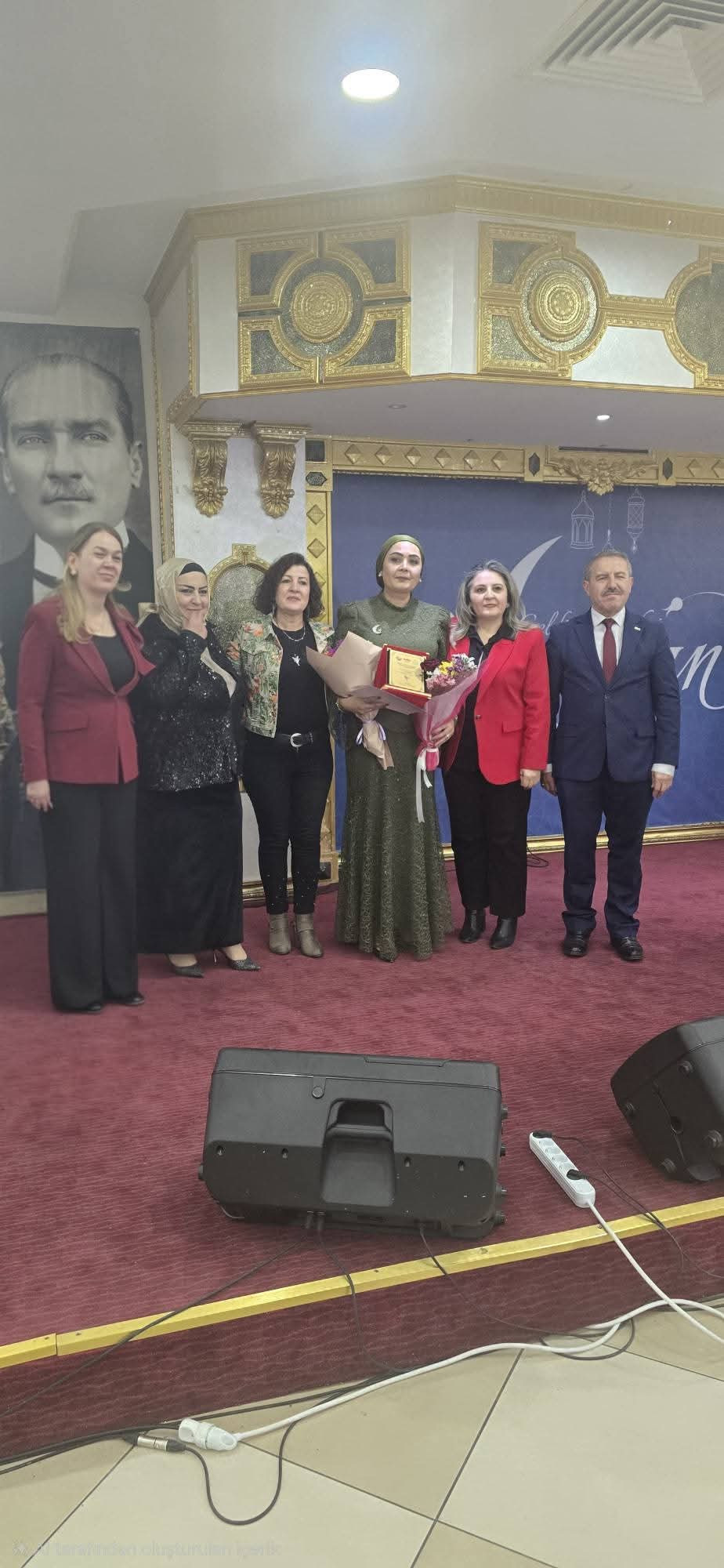 Akabinde Kırıkkaleli Dernekler Federasyonu Başkanı Cemal Sertkaya, Kadın Kolları Başkanı Emine Ulusan ve ekibi tebrik için çiçek takdiminde bulundular.