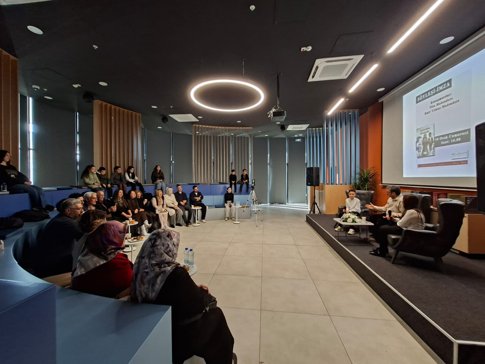 İmza günü ve söyleşi programı, Nisa ve Emir Yılmaz Madendere kardeşlerin hayatını anlatan kısa film gösterimiyle başladı. Ardından moderatörlüğünü Alptekin Cevherli’nin üstlendiği söyleşide, ikizler yazarlık serüvenlerinin başlangıcından, “İkizlerden Hikâyeler” adlı kitaplarının yayımlanmasına kadar geçen süreci katılımcılarla paylaştı.