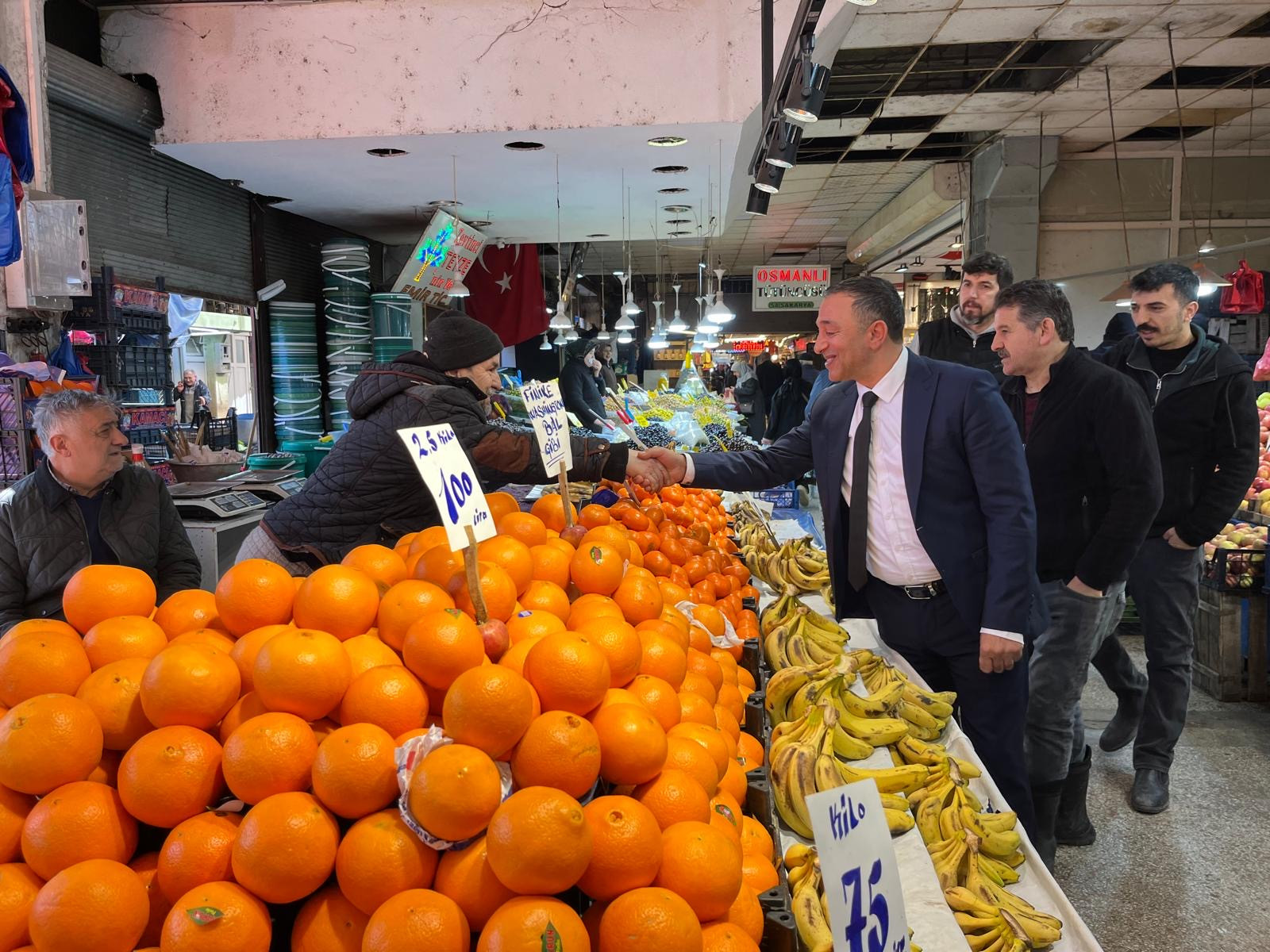 Pazaryeri esnafının günlük çalışma koşulları, maliyetler ve sektörün genel durumu hakkında bilgi alan Mehmet Demir, pazarcı esnafının yılın her günü büyük bir emek verdiğini vurguladı. Pazarcı esnafının sabahın erken saatlerinden itibaren halkın sofrasına en taze ürünü ulaştırmak için çalıştığını belirten Mehmet Demir, esnafın sorunlarını yakından takip ettiklerini ve çözüm üretme konusunda kararlı olduklarını ifade etti.